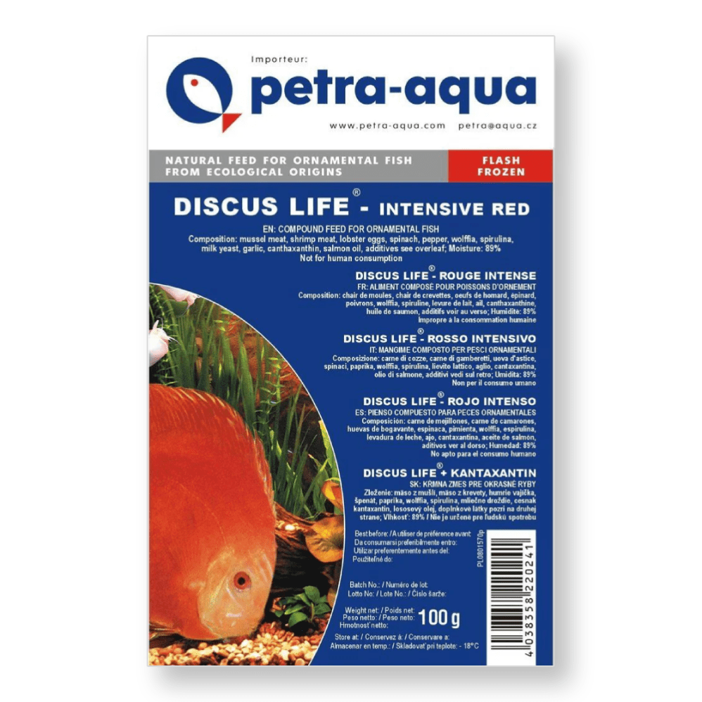 Kvaliteetne, spetsiaalne külmutatud toit, mis on loodud discuste ja teiste troopiliste kalade punase värvuse esiletõstmiseks.